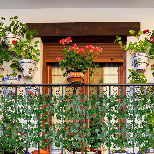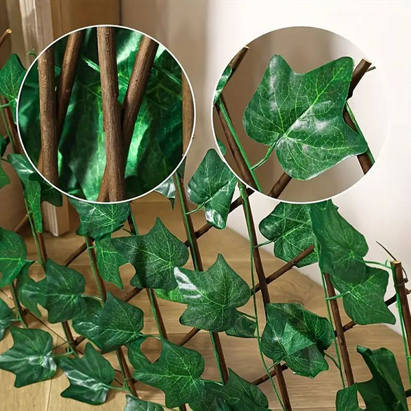 Sem rega, sem poda e sem desbotamento. Com hera estabilizada por UV e resistente ao clima, o seu espaço permanece verde e fresco o ano todo sem manutenção.