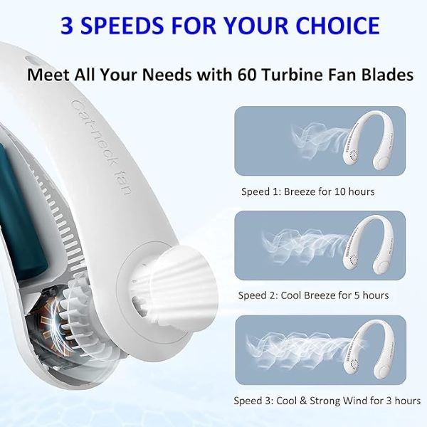 Fabricada em material ABS e silicone macio, esta ventoinha de pescoço tem um design de rotação flexível até 360°,
