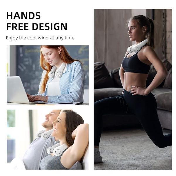 Com um design único e prático, esta ventoinha para o pescoço é uma solução inovadora para se manter fresco sem ocupar as suas mãos.